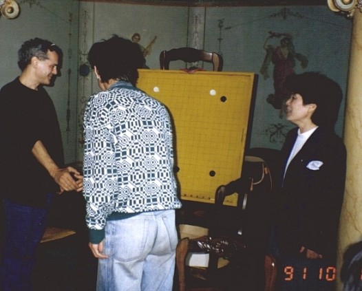 Prin 1986 a aparut in Bucuresti un japonez (4d), mare amator de go. In virsta de 47 ani, dl. Sumiya Haruya venise aici pentru a-si da doctoratul pe tema "Interactiuni intre culturile franceza si romana". A tradus mult din Rebreanu (isi exersa limba romina facind traduceri din Eminescu) iar in 1991 (sau '92) a primit cel mai important premiu japonez pentru o traducere dintr-o limba straina, cu "Padurea Spinzuratilor". Prima data a venit la clubul din Preoteasa insotit de Gheorghe Paun, dar odata ajuns acolo a devenit imediat unul dintre frecventii clubului si totodata al concursurilor noastre. Eu ma intilneam cu el o data pe saptamina si de fiecare data, in timp ce jucam, imi arata cite un nou soi de vin romanesc descoperit prin nu stiu ce colt de tara. Nu era nici pe departe un "bautor" dar degusta cu placere, din cind in cind, cite un vin special. A locuit la inceput, aproape un an, intr-unul dintre caminele studentesti (linga Haitao si Cristian Cobeli). Cind in fine a primit un apartament in oras si l-am ajutat sa-si care lucrurile, a scos de sub pat (spre groaza mea) si mi-a aratat rizind ... trei cutii-capcana pentru gindaci, pline ochi de cadavrele ginganiilor. Ne-a adus mai multe carti si reviste de go - lucruri de care duceam mare lipsa pe vremea aceea. A mai adus un mod cu totul special de a privi jocul, mod care ne-a influentat profund (chiar daca din punct de vedere al fortei de calcul eram foarte apropiati). El ne-a explicat, de pilda, pentru prima data notiunea de SABAKI (dezvoltare usoara a pietrelor intr-o zona de influenta adversa). Si tot de la el am aflat ca poti sa rizi cu gura pina la urechi (si cu sinceritate) chiar si dupa ce ai pierdut o partida !! Eram intro seara, impreuna cu Haitao si Mihai Bisca la una dintre primele intilniri cu
