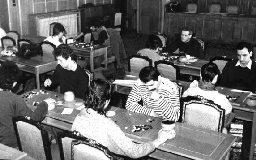 Intr-una dintre primele mele "iesiri" (prin 1994, la Campionatul European de la Maastricht), am fost invitat impreuna cu alti 3-4 romani la un "Go-Party". Erau o groaza strinsi acolo ... crema jucatorilor europeni, conducerea Federatiei ... a Centrului European de Go ... si multi altii. Se discuta, se bea si (evident) se juca go.