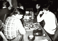1990, Casa Armatei : Cupa Bucuresti (partida mea cu Dan Vitca; in spate - Titi Ghioc si Romulus Sandulescu)