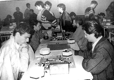 Se oprisera si se uitau la noi lung, cu oarecare compatimire. Cred ca erau Irina Suciu si Ana Szilagyi (nu-i cunosteam inca ...). Oricum, la primul simultan pe care l-am propus au venit mai mult impinsi de la spate de catre Carmen. Dintre ei, numai Vali Gheorghiu parea a fi dornic de joc ... restul fiind cuprinsi de o nemasurata lehamite. Unul dintre ei mi-a atras in mod special atentia. Era unul slabut, care la inceput parea a nu avea nici un pic de astimpar. Habar nu avea sa joace; in mod clar asta era prima sau a doua partida din viata lui. Il chema Dragos Bajenaru si mai tirziu, dupa ce au trecut anii (intr-un moment al dezvaluirilor), Carmen mi-a destainuit ca'ntr-adevar il invatase sa joace Go in tren, pe drumul spre Braila. Pe masura ce partida inainta si piesele-i zburau de pe tabla, Dragos era din ce in ce mai concentrat asupra jocului, agatindu-se din ce in ce mai inversunat de partida ... De atunci a fost nelipsit de la simultanele si discutiile noastre. Treptat si altii de la SAKURA s-au last prinsi de atmosfera care predomina in tabara, devenind spre sfirsit aproape la fel de impatimiti ca si cei din Turnu Severin (ulterior Fundatia SAKURA a evoluat frumos, cei pomeniti ajungind pina in topul jucatorilor romani de Go).