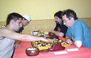 Am scos gratarele, tablele de joc, sticlele de tuica ... iar gazdele au dechis o damigeana de vin. Ne-am pus pe joc.