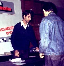 La intrarea in club (barul de sus de la Preoteasa) ne-a intampinat un domn ce s-a recomandat George Stihi. Era atat de entuziast ... Ne-a notat numele intr-un carnetel si apoi a intrebat la ce liceu suntem si ce rezultate avem. Si acum ma apuca rasul ... Dar sunt convins ca acest lucru a avut o mare insemnatate. Seriozitatea si pasiunea degajata de Stihi au avut un rol important in hotararea de a veni si a doua oara la club. Dupa aceasta primire ne-a distribuit pe fiecare la cate un jucator.
