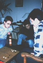Nu-mi dau seama cum arata un club de Go acum vazut prin ochii unui incepator, poate e la fel de impresionant cum a fost atunci pentru mine. Am pierdut prima partida si bineinteles ca asta m-a ambitionat!Am gasit toate articolele din Rebus si Stiinta si Tehnica, le-am citit si recitit... am invatat pe de rost Initiere in Go si am citit Modern Joseki and Fuseki si Basic Techniques of Go, din care n-am inteles mai nimic. Studiind foarte putinele partide de profesionisti pe care le aveam la indemina ajunsesem chiar la convingerea ca ei urmeaza un anumit cod al onoarei care le interzice sa faca anumite mutari, sau ii obliga sa joace anumite mutari in anumite pozitii... altfel nu-mi explicam cum de nu vad mutari bune asa evidente!